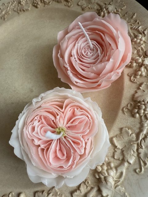 薔薇の咲く季節に向かってバラの形をしたローズキャンドル。